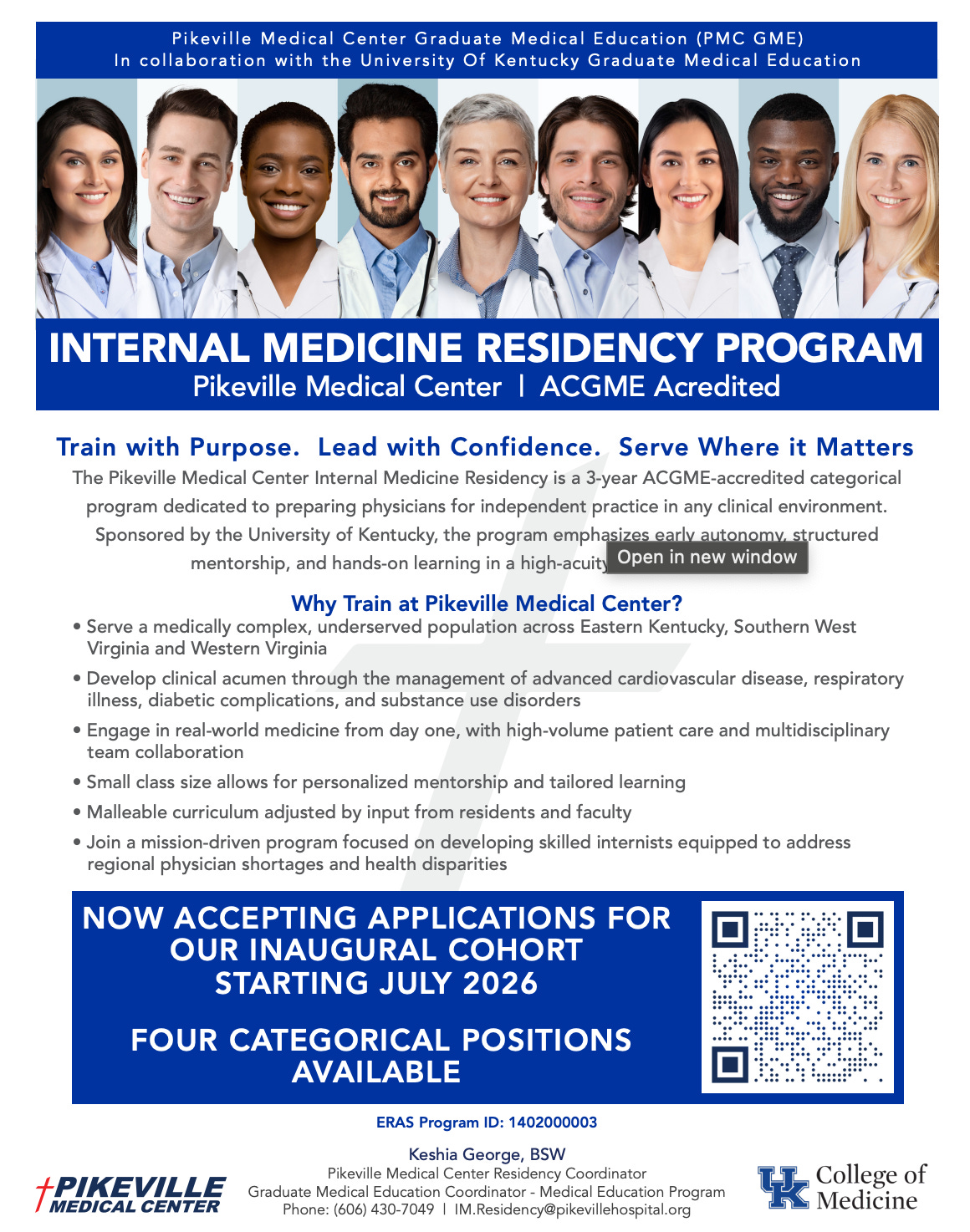 Internal Medicine Residency at Pikeville Medical Center - Applications Open Now